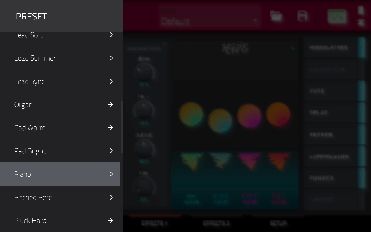 AIR Hype has world-class audio effects processing built-in to quickly enhance your sounds as you create. Choose from Modulation, Distortion, Hype (EQ), Reverb, Delay, Compressor, Pumper and Limiter, each with its dedicated section to dial-in any adjustments. The Effects panel is intuitively displayed on every page of AIR Hype to conveniently enable or bypass each of the 8 effects at any time.