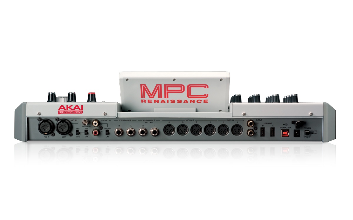 MPC Renaissance features 16 backlit genuine MPC pads, 16 Q-link controls, an adjustable backlit LCD screen, and a full array of inputs and outputs for easy connection in any studio. A two-port USB hub is built-in along with two five-pin MIDI ins and four MIDI outs, stereo ¼" out, stereo assignable mix ¼" out, and S/PDIF in and out. Plus, you get both a â…›" headphone output and a ¼" headphone output. A dedicated switchable phono/line in is also onboard, so you can connect a turntable directly and grab samples straight from your vinyl. MPC Renaissance also features dual balanced XLR Combo inputs with phantom power.
