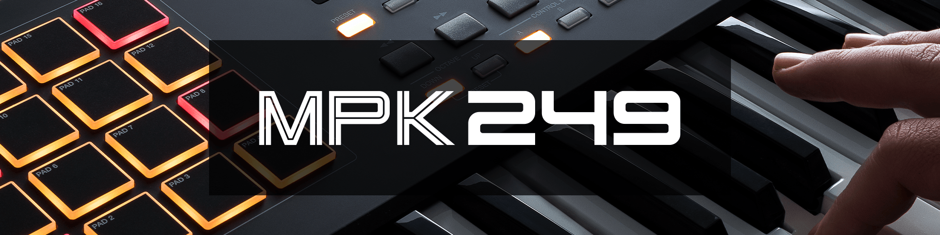 MPK249 comes equipped with 49 semi-weighted, full-size keys and a premium piano-style keybed for unprecedented response and natural feel. Each key is velocity-sensitive and outfitted with aftertouch for dynamic, expressive performances and recordings. In addition, onboard Octave Up and Down controls allow players to access the entire melodic range; play bass lines, piano harmony, solo leads and much more.